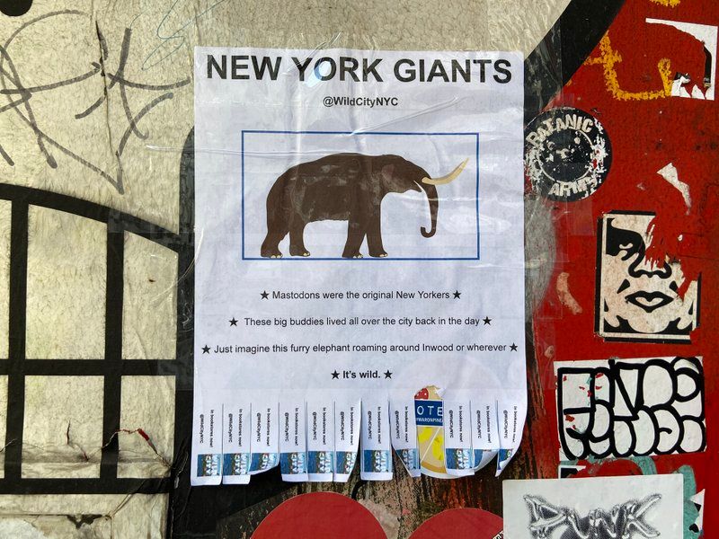 The illustrator of the animals on the posters is Kath Nash, who also illustrated Wild City. Each of the PSAs have more highlights about each creature. The Mandarin Duck one says “Remember this little guy? Used to be around all the time! Loved to swim in Central Park and have his picture taken. But now he’s just gone! We will always love you, Gucci duck. Please come home soon! ENJOY YOUR LOCAL WILDLIFE TODAY!” One of the mastodon says, “NEW YORK GIANTS. Mastodons were the original New Yorkers. These big buddies lived all over the city back in the day. Just imagine this furry elephant roaming around Inwood or wherever. It’s wild.”
