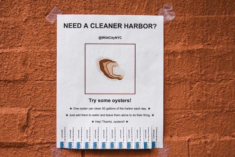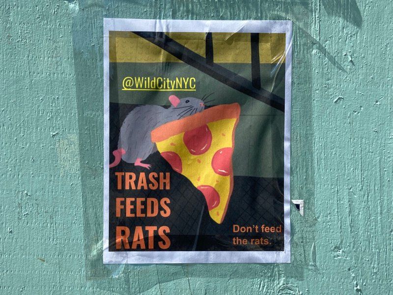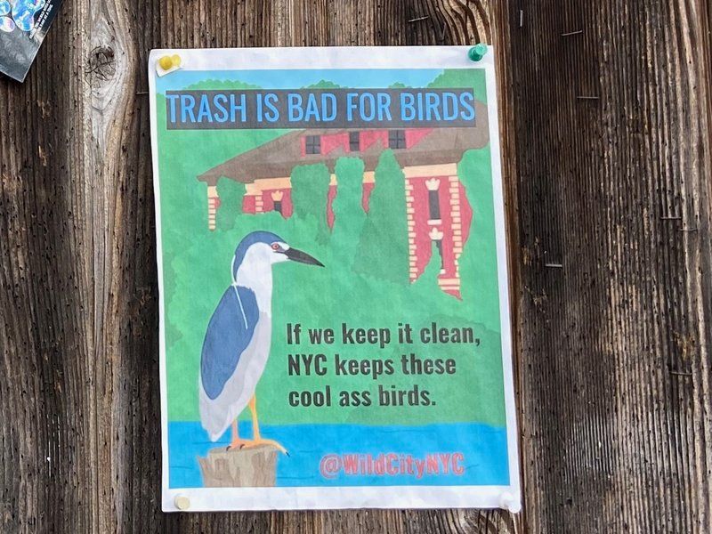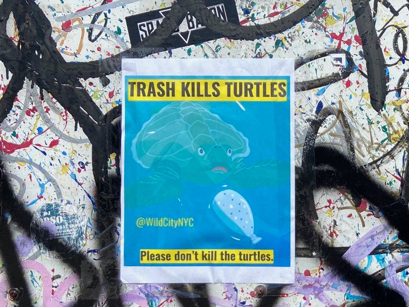 Hynes got his start writing for Untapped New York and turned his animal-focused column into Wild City, which was released earlier this year. It’s an illustrated exploration that highlights everything from the return of the humpback whale to the pizza rat. Hynes started putting these up in anticipation for the release of his book and has continued throughout the summer and as recently as a week ago. He tells Untapped New York, “I’ll probably keep doing them now and then. The anti litter PSAs I put up around the time the parks dept was mentioning their own budget shortfalls and the need for park goers to pick up their own trash.”