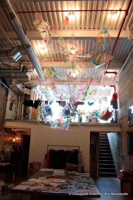 His clothes are unique–instead of the traditional approach of creating pieces with people in mind or for a certain figure, he creates the pieces to stand on their own, and the right person will come along and enhance the piece by wearing it. The use of the shop space as an atelier also adds another unique dimension to the store as you can see the process of the artwork being created-from the conception, to the making to the finished product which you can then walk out in. All of this is further enhanced by the warm, charming and bubbly personality of the designer whose passion for his work and what he is attempting to create in the store just comes out.