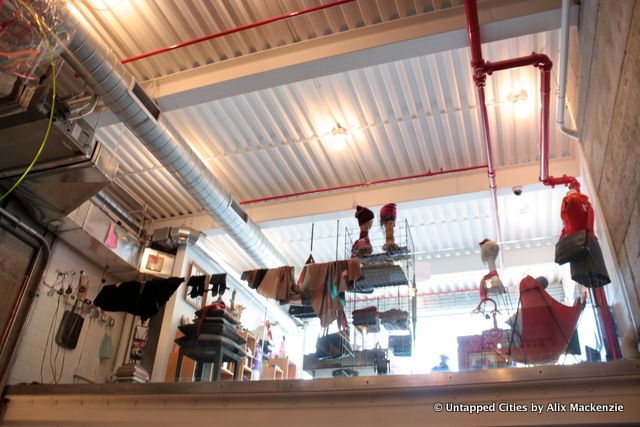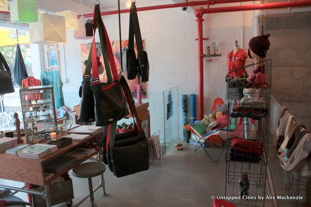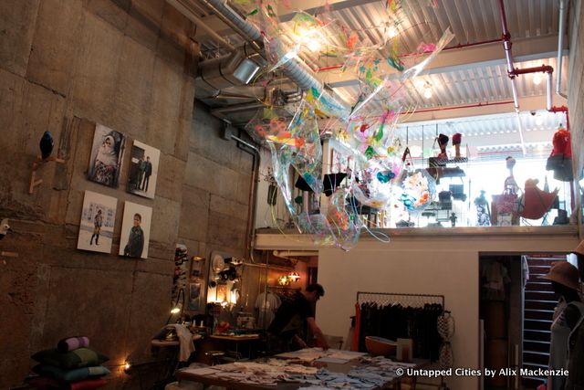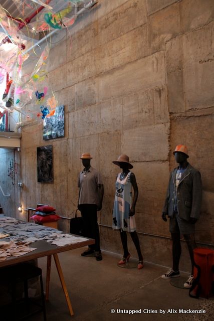 Upon entering GGrippo on 174 Grand Street, Williamsburg, one is confronted with an assortment of very original products: from handmade hand warmers, to notebooks, to jewelry and children’s toys. Yet it’s not until you reach the end of the seemingly small space do you find the real store: down on a second level is an atelier/apparel section/art gallery where you can spy GGrippo himself pottering around finishing up his latest creation. What exactly do they sell here you may ask? The answer is everything that is there (even the sewing maching should you desire).