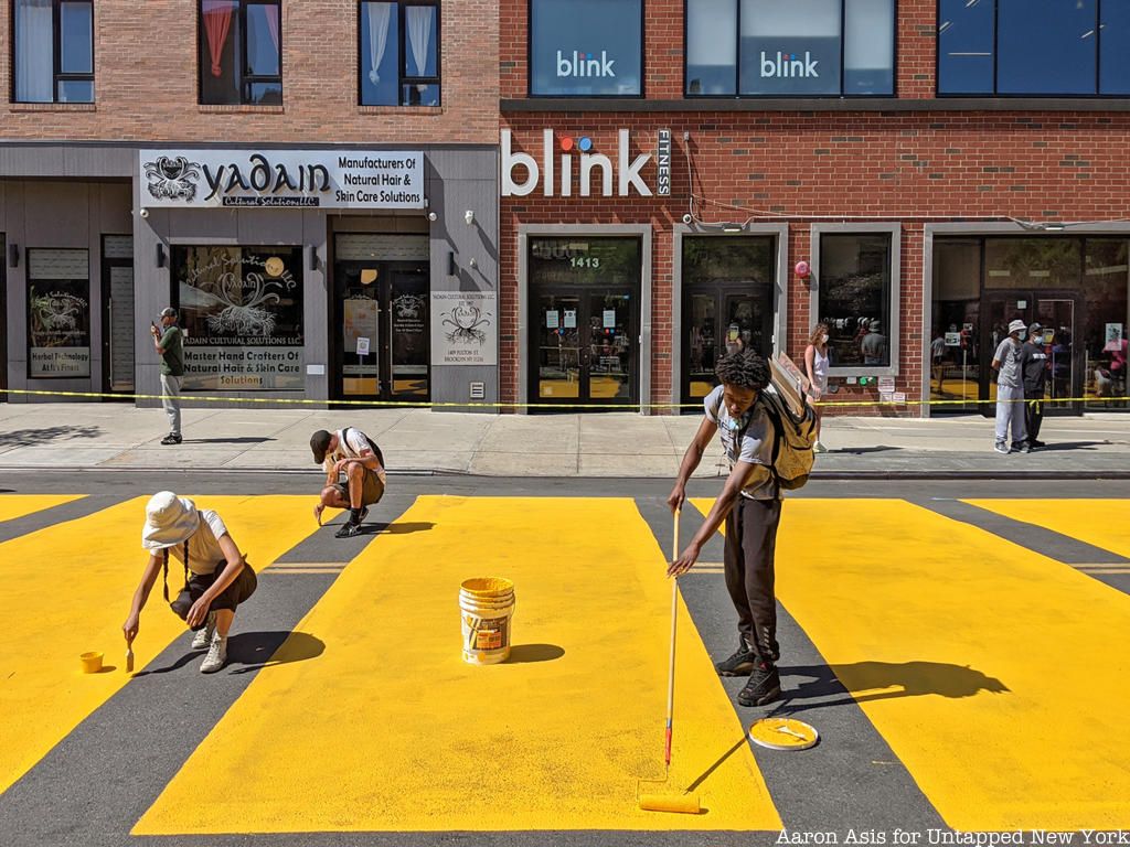 On Sunday morning, New York City’s first Black Lives Matter street mural was unveiled in the Bedford Stuyvesant neighborhood of Brooklyn. The mural, which is an initiative of Bed Stuy Restoration Corp., the neighborhood’s community development organization, displays the words “Black Lives Matter” in bold yellow paint, is similar to other murals that have recently been completed in other cities throughout the country, such as Washington D.C.