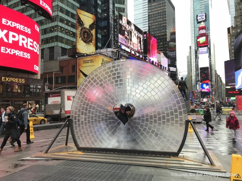 “Times Square is a symbol for how we experience our world. It is a physical manifestation of our culture, one dispersed and absorbed through cameras and screens. And in this culture, to fall in love you must first fall through a lens,” said Aranda\Lasch + Marcelo Coelho about the piece.