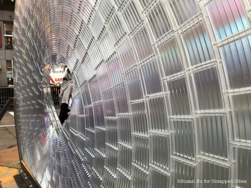 Described as the world’s largest lens, Window to the Heart was designed in partnership with Formlabs, a 3D-printing manufacturer. The sculpture, made of clear resin rather than glass, features a heart-shaped window at its center, which visitors can poke their heads through. On the day we visited, pedestrians flooded around the plaza, waiting for their turn to take a picture with their loved ones.
