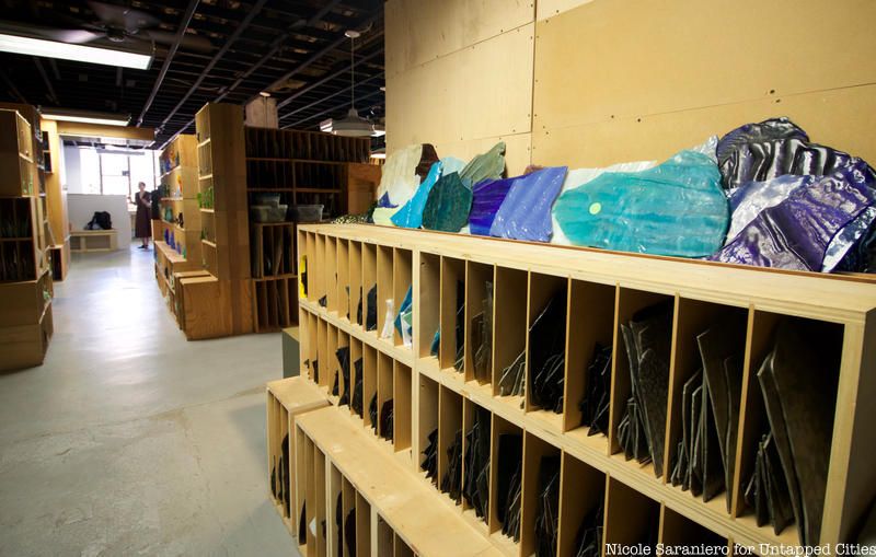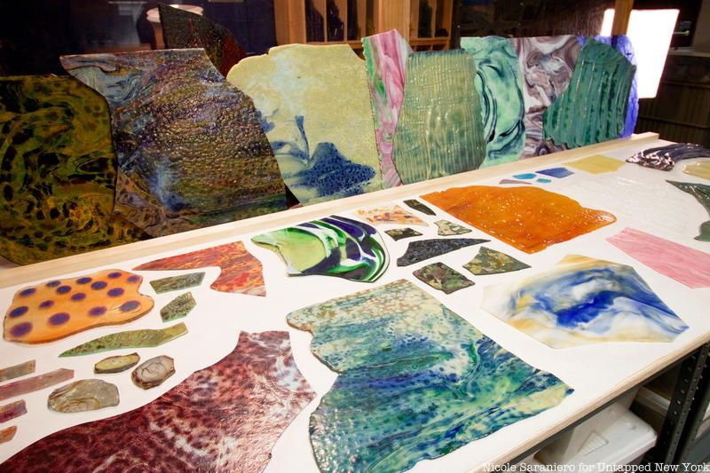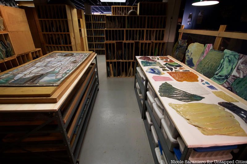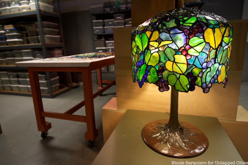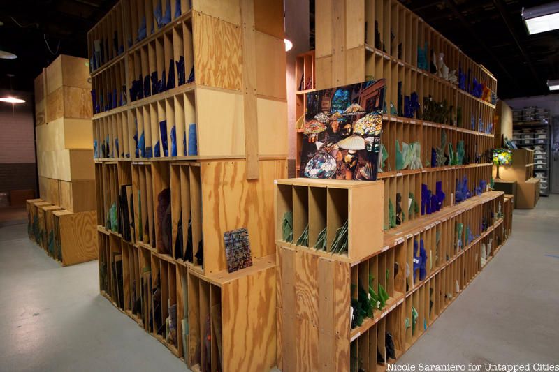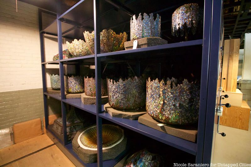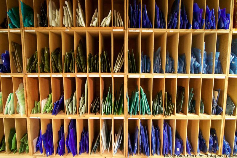Tucked inside an unmarked warehouse in Long Island City, there is a priceless assortment of Tiffany glass, a colorful assemblage of odds and ends that make up part of the largest Tiffany collection ever assembled. Brilliant pieces of flat glass in sheets and shards and beguiling glass “jewels,” more than a quarter of a million pieces in total, are stored in towering rows of shelves and drawers. These pieces were salvaged from the Tiffany Studios in Corona, Queens when it shut down in 1937, and were acquired by a Dr. Egon Neustadt in 1967. While pieces of Neustadt’s collection are on display in the Queens Museum, the New-York Historical Society and in travelling exhibitions, the Glass Archives have remained largely unseen by the public. Untapped New York recently got to explore inside the Archive, and a select, lucky few can do the same each month on one of the Archive’s new behind-the-scenes tours. These tours are only offered to six people at a time, but if you are an Untapped New York Insider, you can join us on one of two, free, members-only tours on November 8th. Not a member yet? Become an Insider today to gain access to free behind-the-scenes tours and special events all year long! Take a look inside the Archives to see what treasures you will discover.