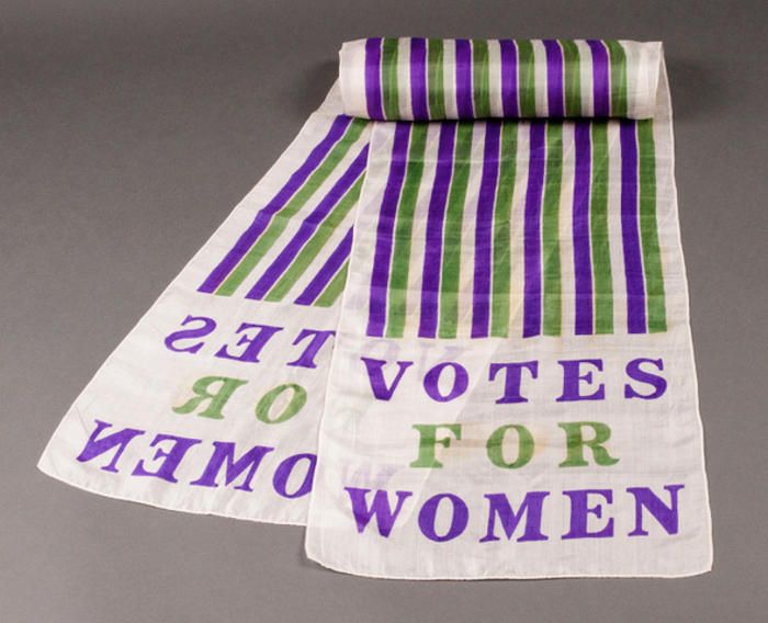 Women’s Social and Political Union. [“Votes for Women” scarf]. [1908?]. Silk. Lisa Unger Baskin Collection, Rubenstein Library, Duke University