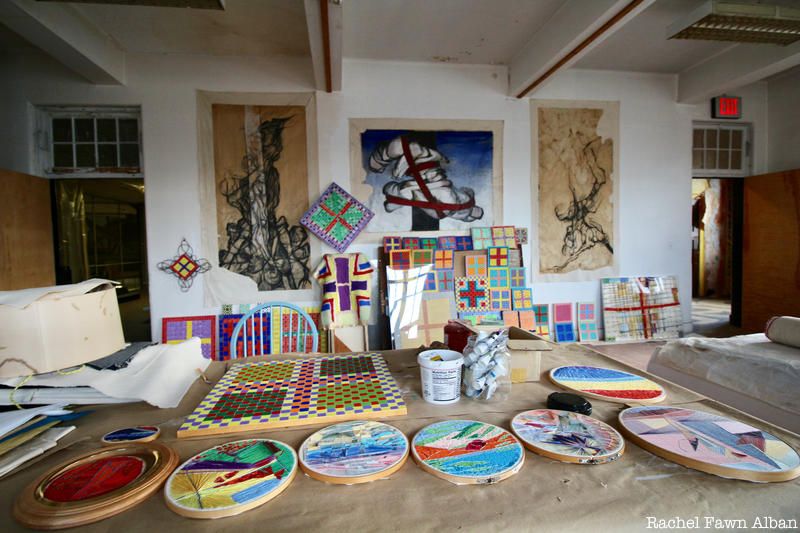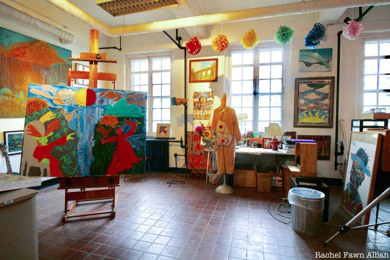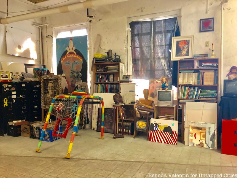 Studio of artist John “Dirty” Tursi displaying his various multimedia works.
