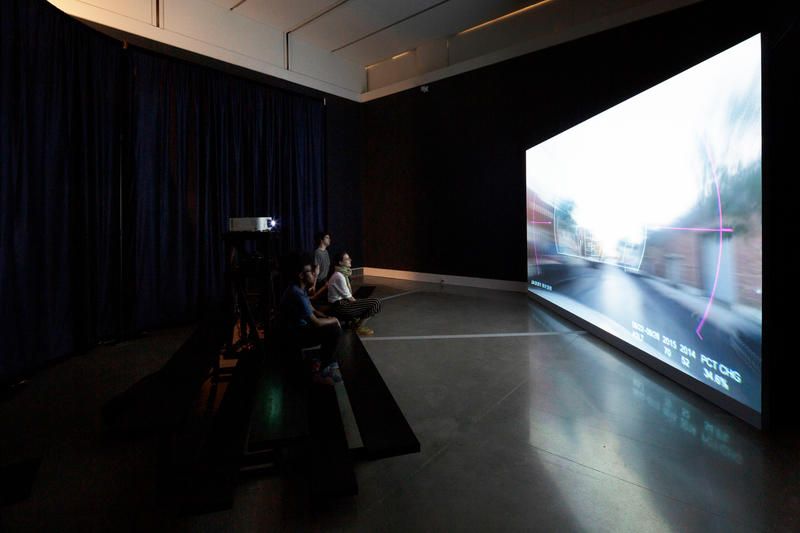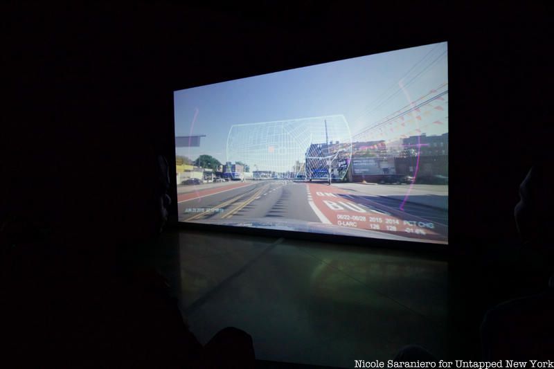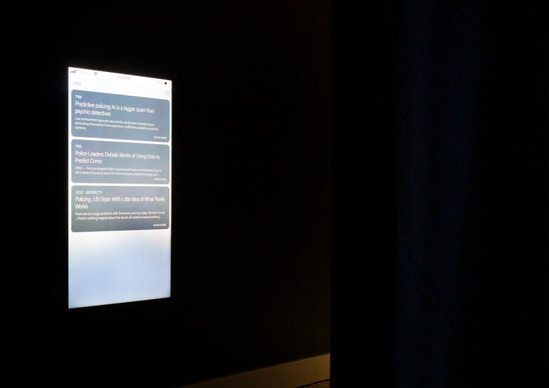Sitting inside a darkened room, surrounded by a wraparound blue velvet curtain, guests at the Queens Museum can experience a police ride-along augmented by artificial intelligence tools. My Blue Window gives visitors a look into the practice of predictive policing, a controversial tactic which the NYPD adopted in 2015. The new media installation, which is accompanied by a phone app, is the first solo exhibit from a Brooklyn-based artist who goes by the name American Artist.