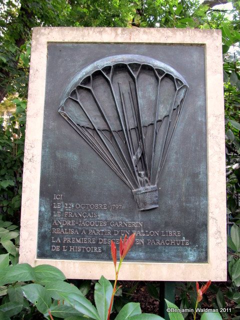Today’s cinematic Google Doodle honors André-Jacques Garnerin, who was the inventor of the modern frameless parachute. Garnerin’s successful parachute jump occurred 216 years ago today, on October 22, 1797. On that day, Garnerin ascended in a Montgolfier hot air balloon until he was at an elevation of approximately 3,000 feet. Then he cut the rope connecting his balloon and parachute. While the balloon continued its ascent, Garnerin and his silk parachute descended into the middle of a large crowd of onlookers located in Paris’ Parc Monceau. Today, visitors to the park can find an illustrated plaque honoring Garnerin’s historic achievement.