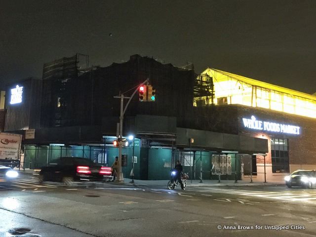 Draskoczy’s work also takes on a tone of nostalgia for the Gowanus before its recent development boom. The photo above is of the Coignet Stone Building, New York City’s first concrete structure built in 1872. This building, now a New York City landmark, was originally constructed to show off a type of French concrete called Coignet Stone and was part of the New York and Long Island Stone Company. This picture is from 2012; today, the building is covered in black scaffolding and surrounded by a Whole Foods complex which opened in December 2013. The building’s current state is shown below.