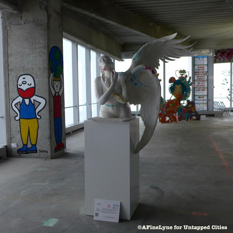 Untapped Cities was fortunate to spend over an hour on the 69th floor with Doug Smith, the man who brought the artistic team together, and curated the project. Below are some of the images that fill the space and makes up the project. This space will soon become one of the floors occupied by Spotify, who recently signed a lease for 378,000 square feet on floors 62-72 as part of its New York headquarters.