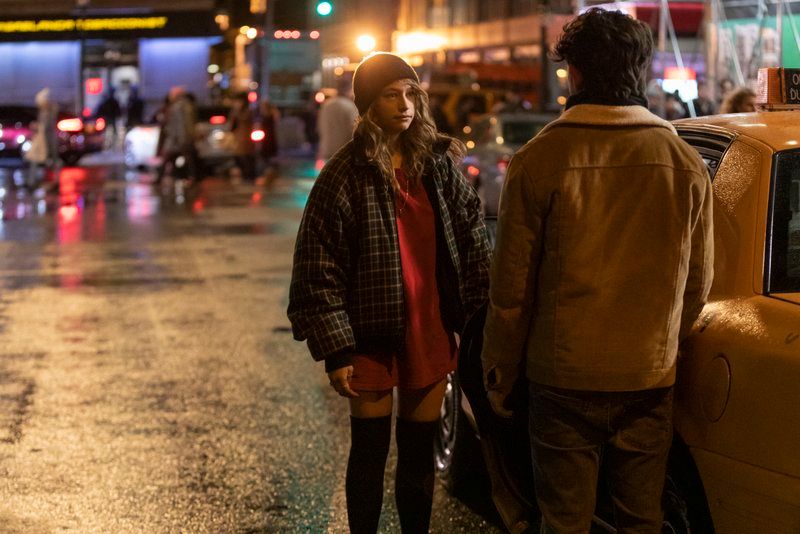 Someone posts Sid’s college essay on Instagram but he doesn’t know it when he gets off the elevated subway near his home in Jackson Heights, one of the most diverse neighborhoods in New York City with a large population of South Asians. His sister Meera meets him at the station and breaks the news to him. While Jackson Heights does have elevated subway lines, this scene is actually filmed in Williamsburg at the Halsey subway station on the J train. The Rite Aid at the corner has been altered to say FAST AID.