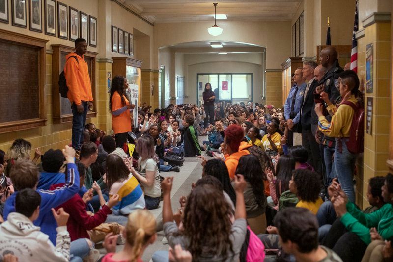 A sit-in during the show Grand Army. Photo: JASPER SAVAGE/NETFLIX © 2020