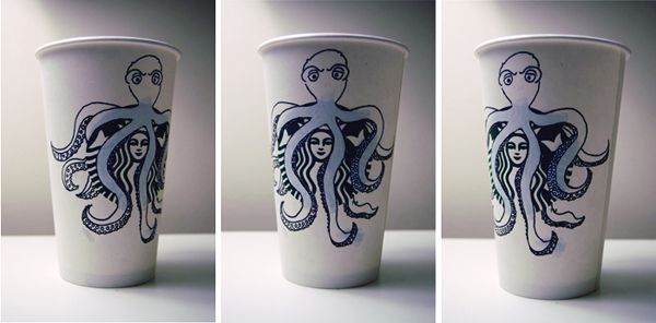 This cute yet angry octopus perched on the Starbucks logo wasn’t my initial idea. I was going to turn the entire logo into the head of the octopus, but realized it wouldn’t be as cute as a smaller one sitting on top. Although this isn’t typical of my cup designs, it’s one of my favorites.