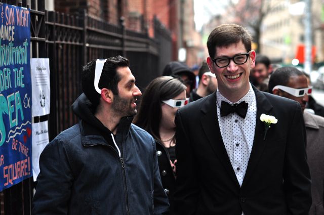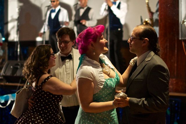 It was no coincidence that St. Patrick’s Gymnasium in Nolita, the setting for BBQFilms‘ weekend screenings of Back to the Future, was erected in 1954. After all, when you send 300 New Yorkers back to 1955 for a high school prom, there had better still be a building when they get there. With the flux capacitor in good working order, wave after wave of prom hopefuls twisted their way through a makeshift time portal, and into the past.