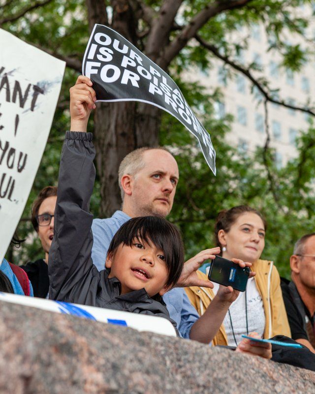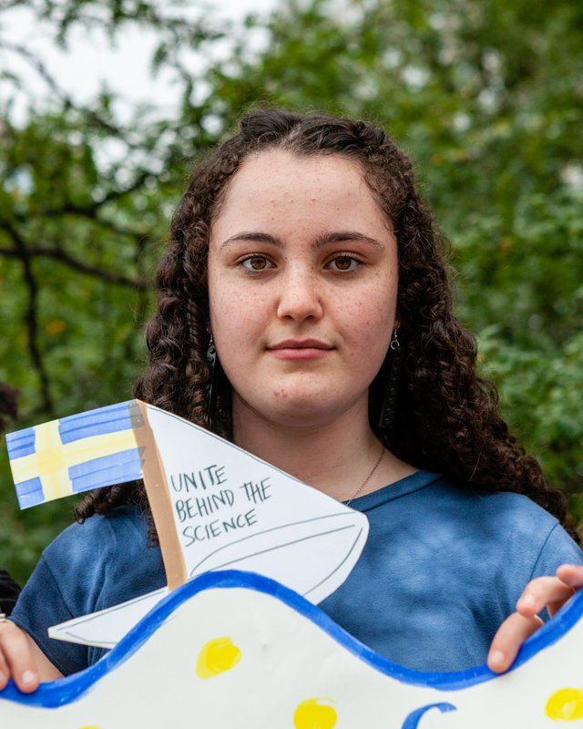 A youthful crowd greeted Thunberg at North Cove Marina, holding signs and shouting their support. One sign says “Unite behind the science,” another “Our planet is poisoned for profit,” others were signs of welcome “Welcome Greta!” and “Greta we are rising too.”