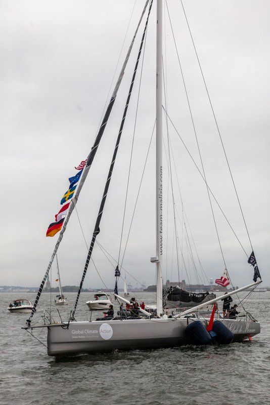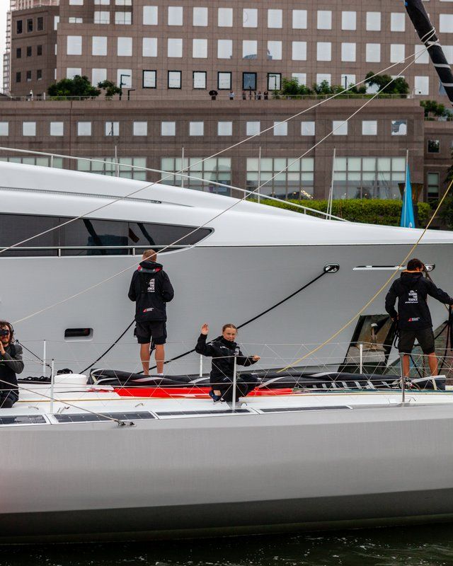 Thunberg and her crew were greeted by 17 sailboats from the United Nations in New York Harbor representing each of the sustainability goals.