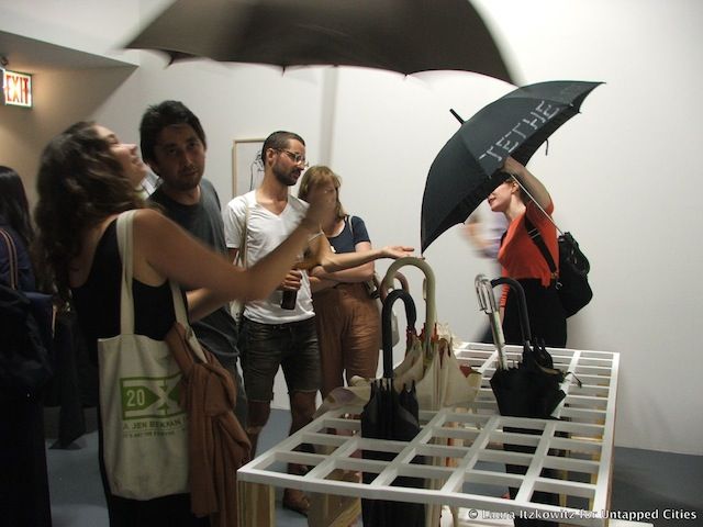 All of the artworks in Matter Out of Place challenge the way we think about public spaces, from empty parking lots and housing projects to prominent museums. The artists aim to delve into urban life and explore the human impact on the city. For 20% Chance of Show, Paul Branca asked six artists to create works on umbrellas to be displayed in MoMA’s lobby as a temporary exhibition. He drew Borrowed Balzac based on Rodin’s sculpture in MoMA’s lobby using pens, pencils and markers he borrowed from museum visitors. In the space of the gallery, reactions ranged from reverent observation to playful interaction with the umbrellas.