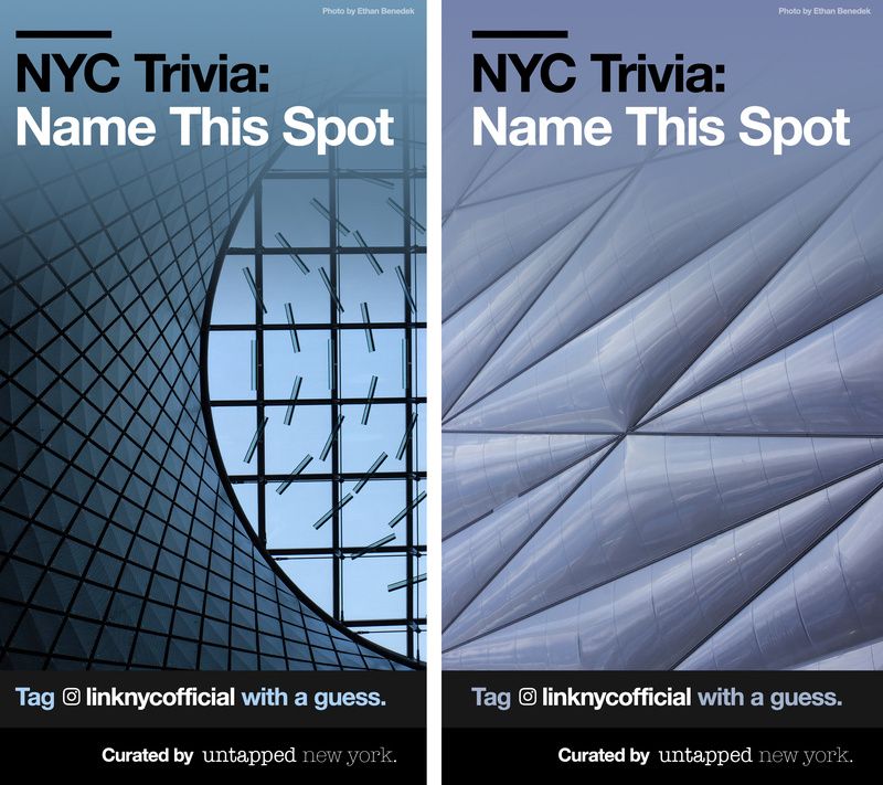 Five new abstract photographs curated and shot by the Untapped New York Team will appear on LinkNYC kiosks this week across all five boroughs. The photographs, which highlight the architecture of New York City in close-ups and different angles, are part of our collaboration with LinkNYC for Name This Spot, an interactive photo scavenger hunt. Every Tuesday, a new batch of photographs are unveiled and the following Monday, the locations are revealed on the LinkNYC Instagram. Discover what places to look for this week, and see if you guessed any of last week’s answers correctly!