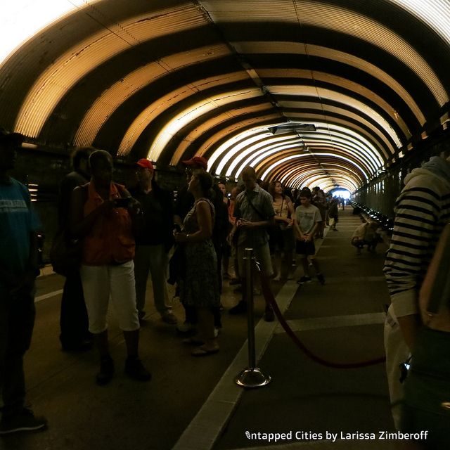 If you don’t feel like waiting, you can watch other people step up between the red velvet ropes and listen in. Exit the tunnel at 40th Street or you can weave your way back to the 33rd Street entrance to get your bike if you rode.