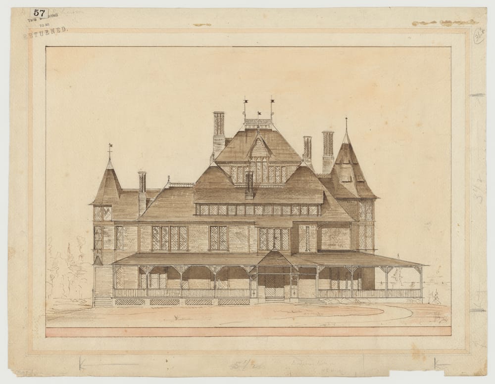 Header Image: Andrews House north elevation. Presentation drawing of near-final design, probably by McKim. P. 43