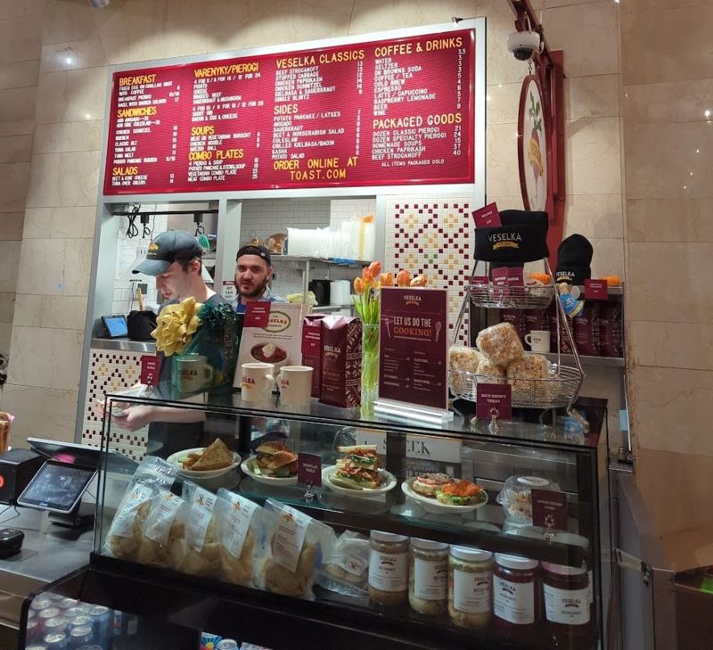 Grand Central has some high-end retail and a typical holiday market. For a real New York treat, East Village Ukrainian restaurant Veselka has a brand-new outpost in the Dining Concourse that sells a dozen ready-to-cook pierogies for $21 and large jars of pre-made soups and borscht for $15. You might as well get some delicious fried pierogies for your trip, too.