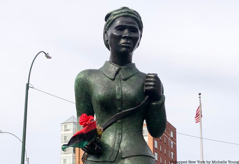 Amid the bustle of Harlem, a Harriet Tubman memorial stands in celebration of the courage, commitment and compassion of the towering female figure. Swing Low, the surreal public art sculpture by Black artist Alison Saars, commissioned by the NYC Percent for Art program, depicts the abolitionist as the powerful engine of the underground railroad, the network of escape routes and safe houses that brought scores of slaves to freedom. In honor of National Women’s History month, as well as the anniversary of her death today, pay a visit to the Harriet Tubman statue right here in New York City.