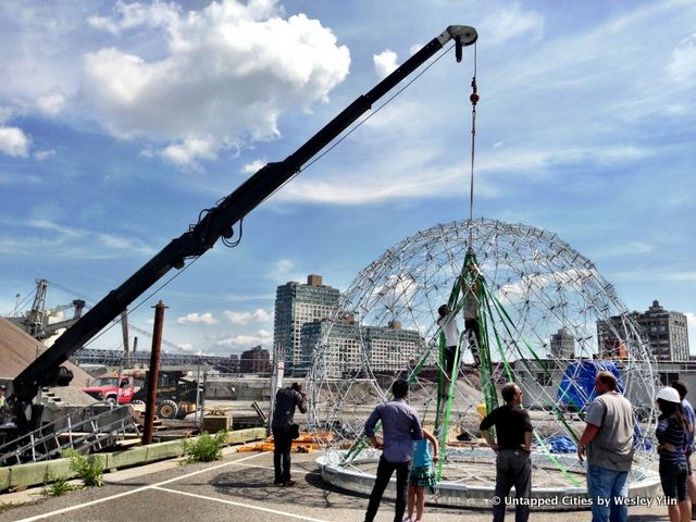 The green ropes were used to lift up the Dome.