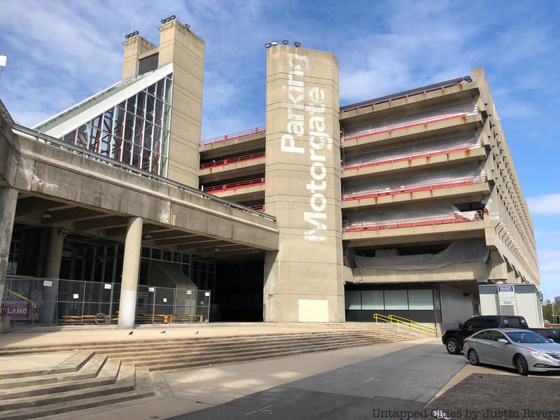 The cars, with graffiti on them, are located on the ground floor of the Motorgate parking garage on the north side of Roosevelt Island. This Brutalist structure, designed by Kallmann & McKinnel is a multi-use building, created in 1974 to hold the cars coming to the predominantly car-free island, hosts retail spaces, supermarket, firehouse and post office. The parking garage started to undergo repairs and upgrades earlier this year, which are still ongoing.