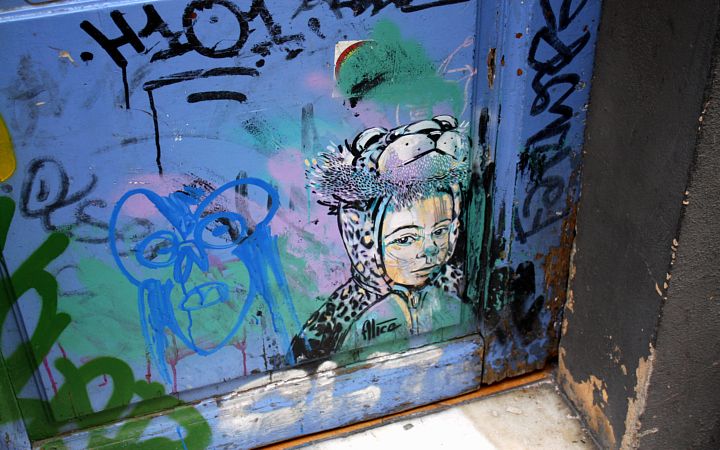 Alice, a popular Italian street artist, stays quite busy with happy and bright colors portraying scenes of women of all ages throughout Barcelona, above all documented in the ‘El Raval’ area. Photo by Lauren Heineck.