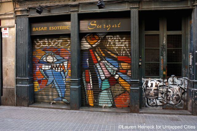 Local urban street artist Pez has been known and commissioned by many of Barcelona’s vendors to paint their stores’ shutters.