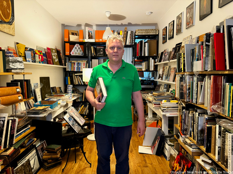 Nothing about 882 Lorimer Street indicates there is a bookstore inside, except for a small label on the buzzer that reads “Books (appointment only).” Bibliophiles, fashion enthusiasts, and design nerds in the know have been visiting the unassuming Greenpoint house, home to High Valley Books and its proprietor Bill Hall, since the 1990s. Down in the basement, visitors can scour overflowing rows of bookshelves packed to the brim with vintage books and magazines. It’s an experience that author and Untapped New York contributor Laurie Gwen Shapiro described as “heavenly.” Shapiro and Untapped New York’s founder Michelle Young spent last Monday afternoon searching through the stacks and chatting with the owner.