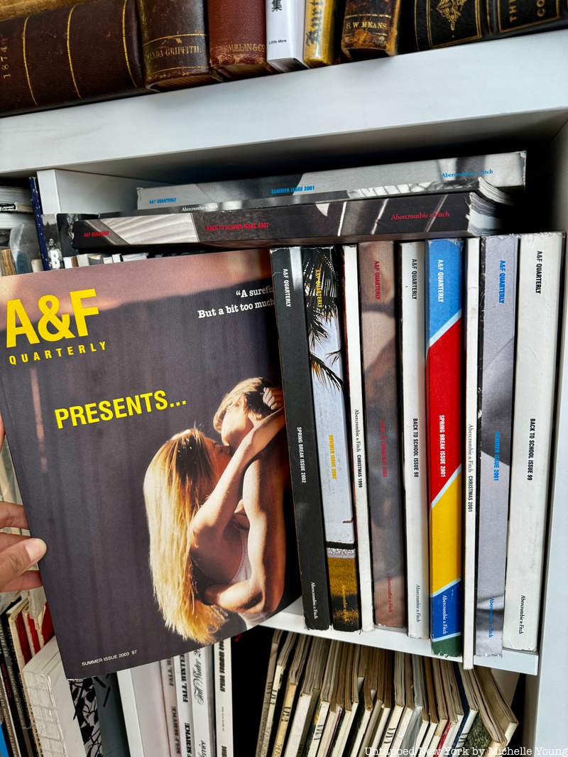 During our visit, Michelle found a selection of Abercrombie & Fitch quarterly magazines that brought up memories of her previous career in the fashion industry when she worked for the company. Laurie dug for and discovered mentions of Amelia Earheart, the subject of her next book, in vintage magazines. Michelle ultimately went home with an issue of Vogue from November 1941 that featured a spread on the Vanderbilt mansion on Fifth Avenue.