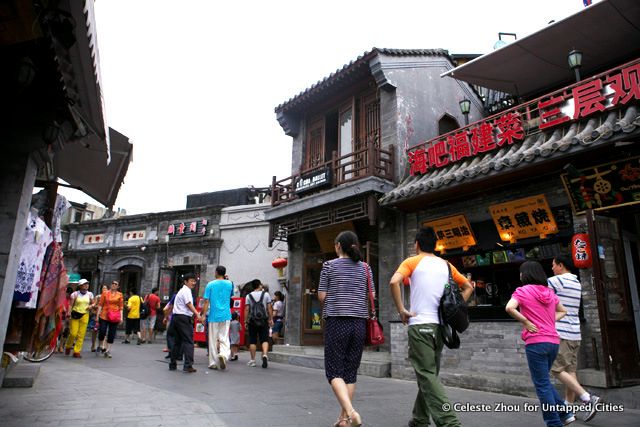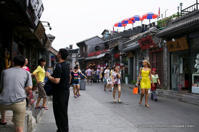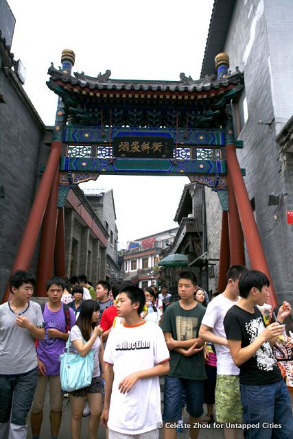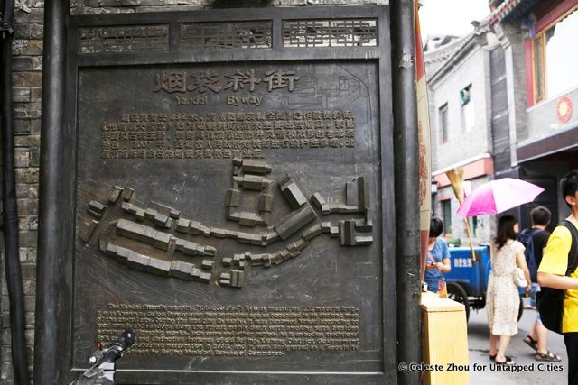 Yet the name “Yandaixie” is not only credited to its flourishing tobacco shops, but also to the shape of the street. The 232-meter-long alleyway connects Di’anmen Outer Street with Yaer Hutong next to Shichaihai, and its eastern intersection with Di’anmen Outer Street is wider than the rest of the street, forming the shape of a pipe’s mouth.
