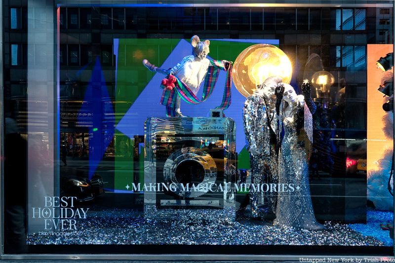 It’s a big year for Bloomingdale’s as the department store celebrates its 150th anniversary! The windows at its flagship store at Lexington Avenue at 59th are decorated with the themes of gift giving and making memories. Mannequins dressed in over-the-top outfits and accessories are surrounded by whimsical scenes of larger-than-life objects.