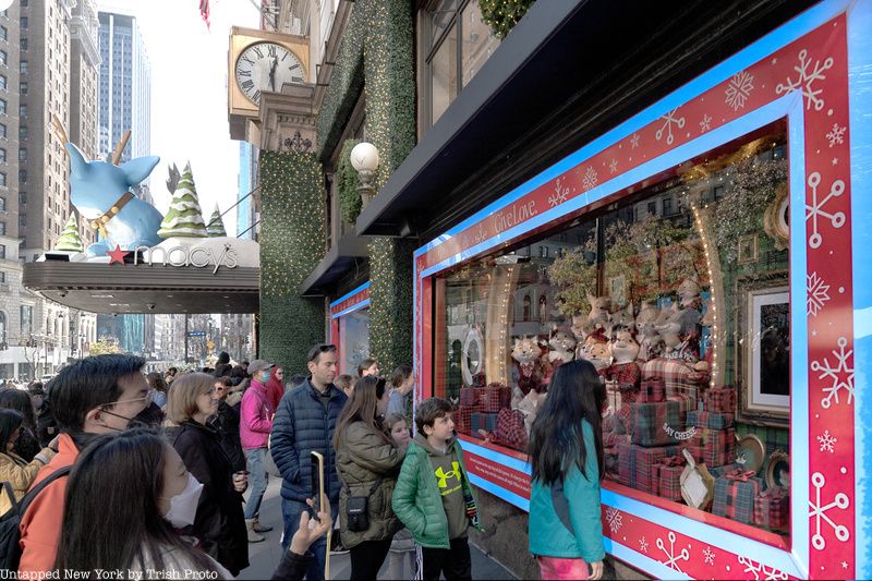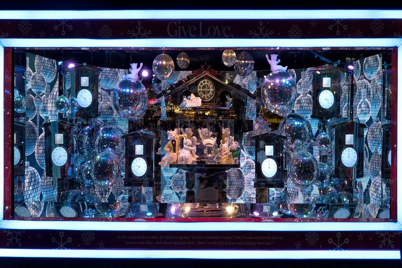 Throughout the displays in the windows you’ll see fuzzy polar bears in a world made of yarn, foxes, and mice dancing in reflective scene of disco balls, a team of Santa suit-clas squirrels decorating a Christmas tree, and more. Macy’s tradition of holiday windows dates to 1874 when the department store became the first to feature animated window displays.