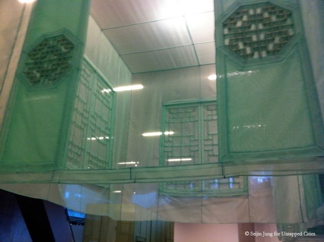 Building up houses that are made of fabrics is usually what we would encounter only in children’s imaginary sketches. Yet, at Seo’s exhibition you would easily notice that fabric houses are more than a mere imaginary aspiration to the artist. In fact, fabric houses for Seo are a perfect means to bring his aspirations to reality.