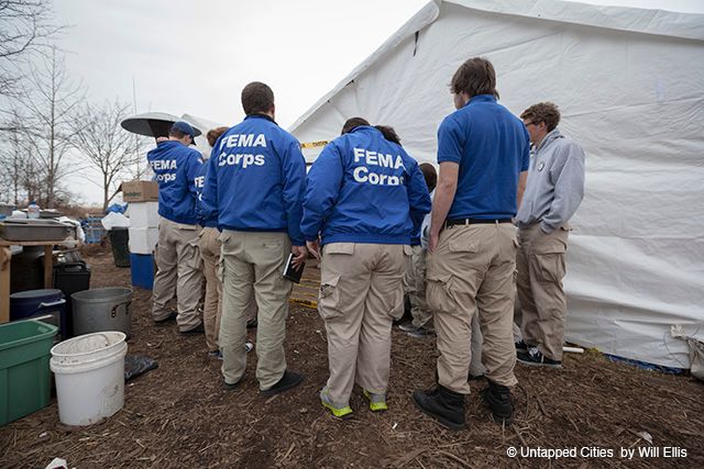 Melanie Cohn of the Council for the Arts and Humanities for Staten Island leads a walking tour through Cedar Grove, Staten Island.Entrance to the devastated Cedar Grove Beach. A dozen houses once lined the ocean, now only two newer constructions remain.Residents who’ve returned say that some of their neighbors haven’t been back yet to survey the damage. Many are still displaced in shelters, living in distant hotels, or staying four to a bedroom with in-laws.Some are living inside their damaged homes, struggling to make repairs themselves. Countless individuals are dealing with the latent psychological effects of the storm.Signs of progress are becoming more common. Debris has been cleared from this lot, exposing a painted foundation.Construction materials come and go as contractors begin the process of rebuilding. The city’s Rapid Repair service has been effective for many, although some residences are beyond help.A painted notice on this collapsed house warns looters to “keep out.”On Cedar Grove Ave, a damaged home becomes a symbol of resilience.Spray painted markers and notices signify the livability of the houses, if residents have been accounted for, or whether or not the structure will be razed.Across the street at Miller’s Field, a Brooklyn motorcycle club (the Hallowed Sons) has set up a recovery center. Inside, victims, volunteers, and passersby can pick up a hot meal in a heated tent, watch TV, and enjoy some companionship.Local restaurants have been generous, donating hot food to feed the neighborhood.A volunteer (and his dog) had been camping out there since soon after the storm. “For every good story, there [are] bad ones,” he says.A group of young FEMA staff check in with the center’s leader.Last week, they were strangers, but today, a group of homeowners are coming together to organize a march down Cedar Grove Avenue in conjunction with similar demonstrations across New York and New Jersey. Their unofficial motto? “It’s not a me thing, it’s a we thing.”Organizers feel that the government has left them behind following last week’s decision to pass only a small portion of a Sandy relief bill.Congress will vote on an additional $51 billion in aid later this week.