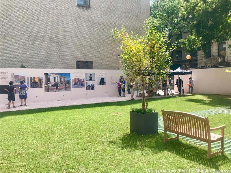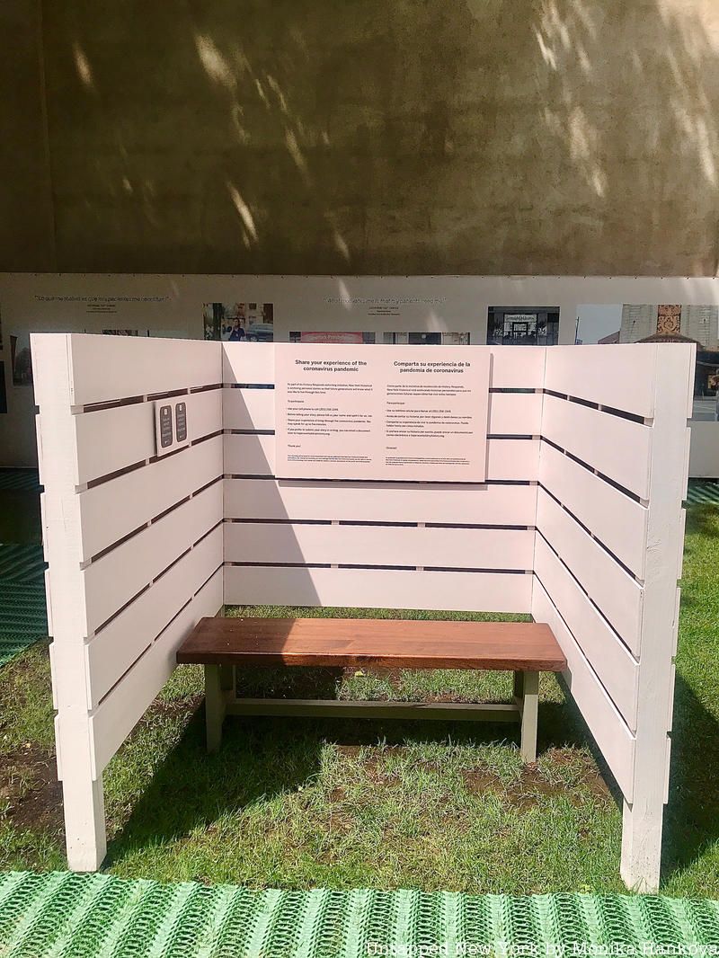 To hear these and other heartening tales of the photographs’ protagonists in both English and Spanish, visitors are asked to access them via cellphones. The weatherproof panels are installed in a tranquil, spacious rear courtyard behind the museum’s Upper West Side landmark building, which The Society plans to use for its future projects as well. It has a plenty of space for social distancing and several wooden benches, where New Yorkers can contemplate the continuing impact of COVID-19 in their communities and our everyday lives. Also, there is a quiet seating area with a booth where every visitor can share his or her own unique coronavirus experience (The New-York Historical Society is archiving personal stories for future generations as part of its History Responds initiative).