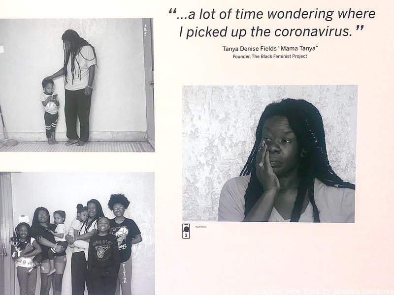 Photographer Kay Hickman, a visual storyteller, whose other work mostly expands the narrative of the African Diaspora while challenging monolithic representation, has been documenting the coronavirus experience of fellow New Yorkers from the very beginning. “Mama Tanya” Denise Fields from the Bronx, whose story opens the exhibition, is one of them. A single mother of six and a founder of The Black Feminist Project “was terrified when she realized in mid-March that she may have contracted the coronavirus during a recent trip to New Orleans for a conference. Knowing that she could also spread it to her children and her partner was even more frightening.” She said: ”I’ve spent a lot of time wondering where I picked up the coronavirus. Probably too much time. First of all maybe I got it when I went down to New Orleans for work. It was also around the time when Corona was starting to become a household name (…). I was like ‘This is serious, this is a big deal.’” Sadly, Ms. Fields came down with the virus with all of her children except for the youngest. To this day she has trouble breathing. Despite this fact she keeps organizing food assistance via her nonprofit organization.