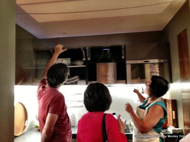 The museum also scheduled events in the exhibit to showcase the apartment and its accompanying lifestyle. We made it in time for a demonstration on how to organize your kitchen. Chef Terri Lee of Great Performances led the demo, emphasizing that great organization is perhaps the most difficult part of cooking in a small space. Her tips mostly focused on ways to scale down your kitchen; that is, figuring out which tools and supplies you actually need, and which ones you can discard. For instance, Chef Lee chose to keep just one small whisk as opposed to a larger one or whisks of multiple sizes. She replaces a number of tools with a pair of versatile cooking chopsticks.