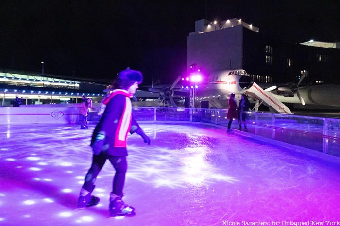 Every winter, New Yorkers and visitors flock to the iconic ice rinks of Central Park and Rockefeller Center, but this year, winter revelers can have a new ice skating experience at JFK Airport. The new Runway Rink at the TWA Hotel allows guests to skate on the tarmac around the hotel’s 1958 Lockheed Constellation Connie airplane, a vintage airliner which has been converted into a cocktail lounge. Lace up your skates and hit the ice, enjoy a rink side snack and beverage, and watch the dazzling daily ice skating show on the custom rink made with 3,500 galloons of frozen NYC tap water.