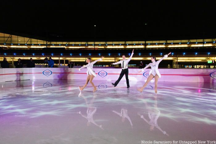 After the show, performers skate around the rink greeting guests and taking pictures. Untapped New York even got a skating lesson from the choreographers! After you work up an appetite skating, you can head to the chalet style shop next to the rink for drinks and snacks. Beer and wine along with treats like Sno-Caps and chips are on sale. You can also purchase cozy winter gear like knit hats and scarves, emblazoned with the TWA logo, or holiday decorations to bring some vintage flare into your home.