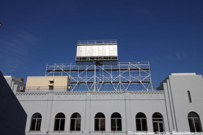 For nearly half a century until 2017, the WATCHTOWER sign stood guard over the DUMBO waterfront marking the global headquarters of the Jehovah’s Witnesses. Between 2017 and 2018, the complex was sold to developers and now as part of a new creative office and retail campus at 30 Columbia Heights called Panorama, a new sign reading “WELCOME” was completed today. This would be the third sign atop this building, which was originally built for the ER Squibb & Sons. (The pharmaceutical company was active in nearby Brooklyn Navy Yard as well, developing the first anesthetic ethers for use in surgery in the now-abandoned Brooklyn Navy Yard hospital).