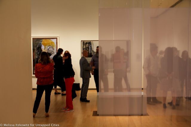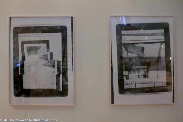 Another artist who pushes the boundaries of digital work is LA-based artist Andrea Longacre-White, who has two large black and white images of iPads on the wall immediately as you go downstairs. The images are slightly off-kilter and imperfect but attention-grabbing. Longacre-White actually took photographs of ICP’s interior, emailed the jpegs to herself, opened them on an iPad and placed it face-down on a flat-bed scanner. In the process, the iPad confused the heat from the scanner as a touch command and began shifting to another page. The result is a blurred image that seems to be commenting on the way different forms of technology interact with each other.