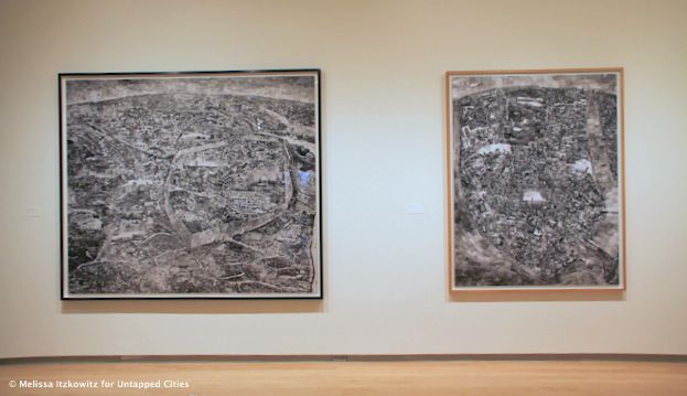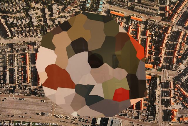 Tokyo-based artist Sohei Nishino defies the rules and expectations of photography in a different way. Since 2004, he has been making large scale Diorama Maps. Simply put, Nishino’s Diorama Maps are visually stunning. From far away, you see a cohesive photographic map of a city—New York City and Jerusalem are shown at ICP, though he has done several more. Close-up, you realize that the maps are created from thousands of prints that have been cut up and reassembled. Nishino typically spends a month in a city, walking its streets and photographing its landmarks on a 35mm film camera. He then prints contact sheets from the negatives, cuts out each image and rearranges them by hand. Not only is the process unusual, but the goal is not the typical photographer’s goal of documenting a place. Nishino does not present a geographically accurate map or an objective representation of the city. Rather, he creates a collage that conveys his impressions of the place and what makes it tick.