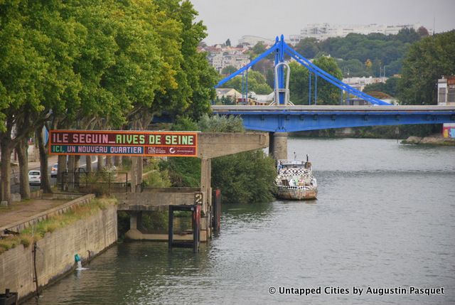 The island was bought by Louis Renault in 1919 and became the largest factory in France. Renault cooperated with the Nazis during World War II and the factory was bombed by Allied forces in 1942. The last car was produced there in 1992. Check out this great vintage wartime footage on the allied strike.