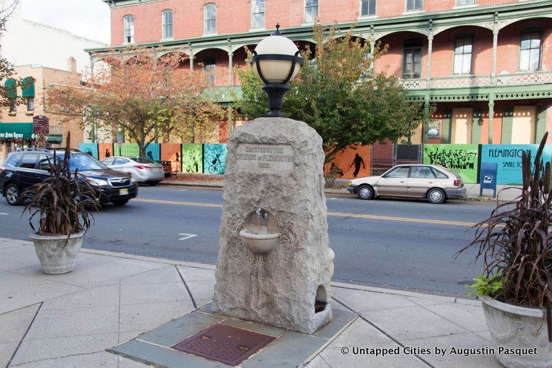 On a visit to Flemington, which we highly recommend before any demolition commences, take a walk north along Main Street from the courthouse. Along the road in front of the courthouse, you’ll find marker denoting the true meridian and a horse fountain along the road from 1902. On the interior side, it served as a water fountain for humans, on the exterior for horses and dogs.