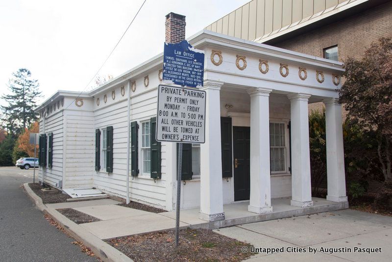 Then one of the most adorable buildings is within view, the Samuel Southard Law Office from 1811. The Greek Revival building, designed by Mahlon Fischer, has a Doric style colonnade.