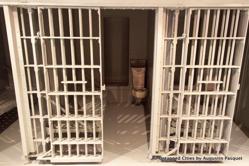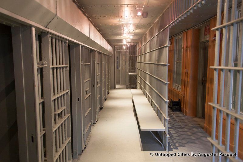 The original jail for the town was underneath this courtroom but in 1926, a new jail was built next door – a rather pioneering example of prefabricated construction. All the pieces for the jail were pre-made by the St. Louis Jail Building Company, moved to Flemington and put together on site. The sliding door locking devices for the jail were made by the Pauly Jail Building Company, a firm that still exists. It was in these cells that Bruno Hauptmann was held.