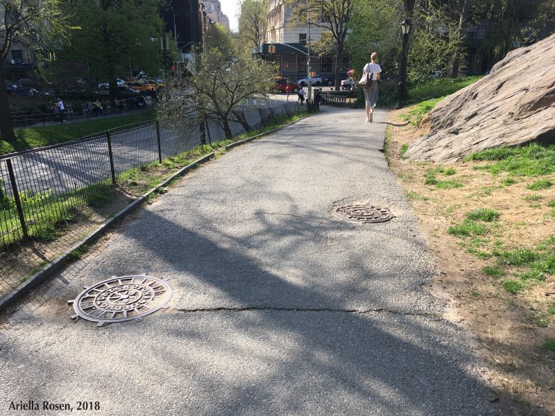 Walking with my dad in Central Park last week, I was saddened to discover that I had lost a cast-iron friend: the Croton manhole cover from 1866, which I have visited regularly for the last three years. I knew from the start that a manhole as old as this one (which was one of the oldest in the city, behind an 1862 cover also in Central Park) could not last forever. After all, this is the fate of manhole covers, though they feel like such permanent fixtures in New York City — to be walked upon and forgotten, silently serving the public until the once-sturdy surface ceases to bear weight, and the modern infrastructure and the historic relic can no longer exist together. I had braced myself for this day, and yet it was still a hard blow to see an unfamiliar face in place of the one I have known and loved.